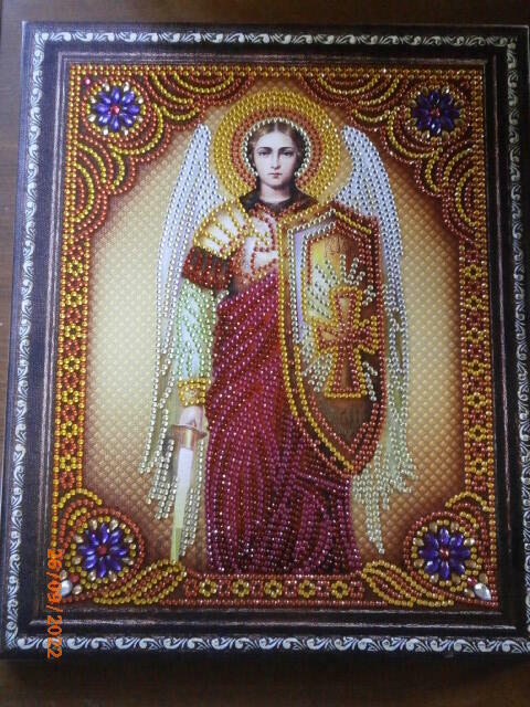 Здравствуйте, делюсь с вами ещё одной оконченной работы Алмазной вышивки Архистратиг Михаил, результат получился блестящим, как окончила работу, сразу приступила делать Воскресение Христово, удовольствие растягиваю, так как делаю по два рядка.1 файлответить